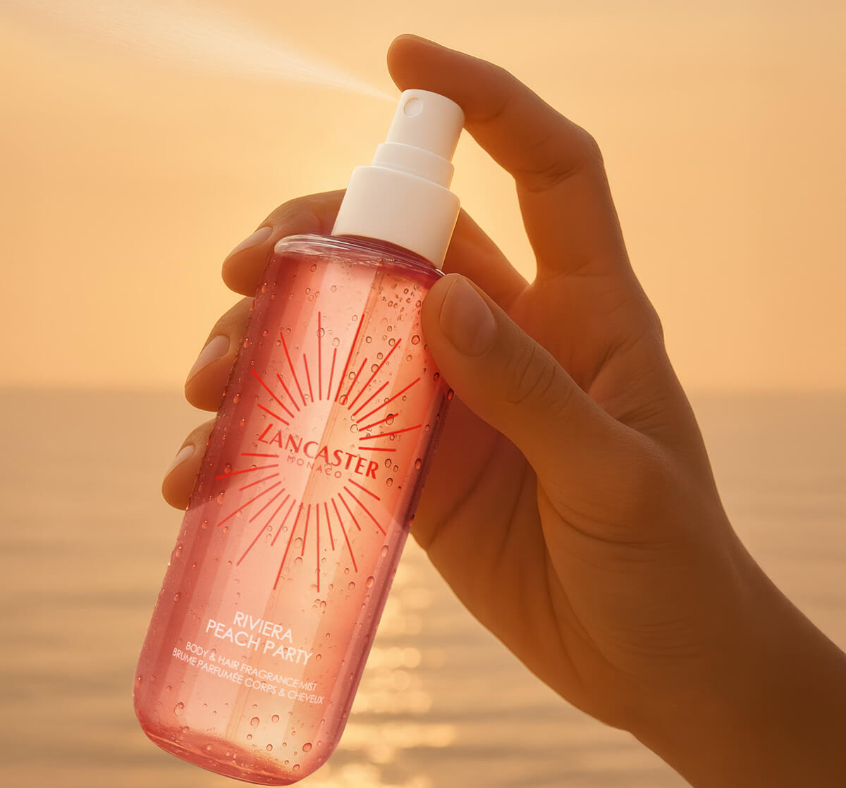 Lancaster's Riviera Peach Party Body & Hair Fragrance Mist is the scent of effortless summer glamour. A spritz of pure joy, designed for the ones who bring the party wherever they go.
